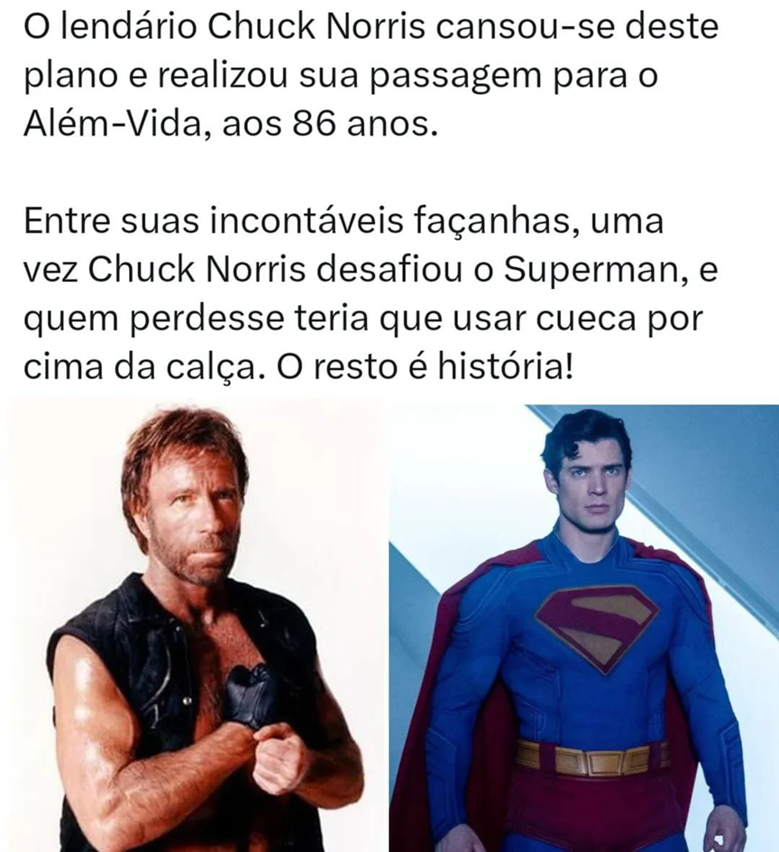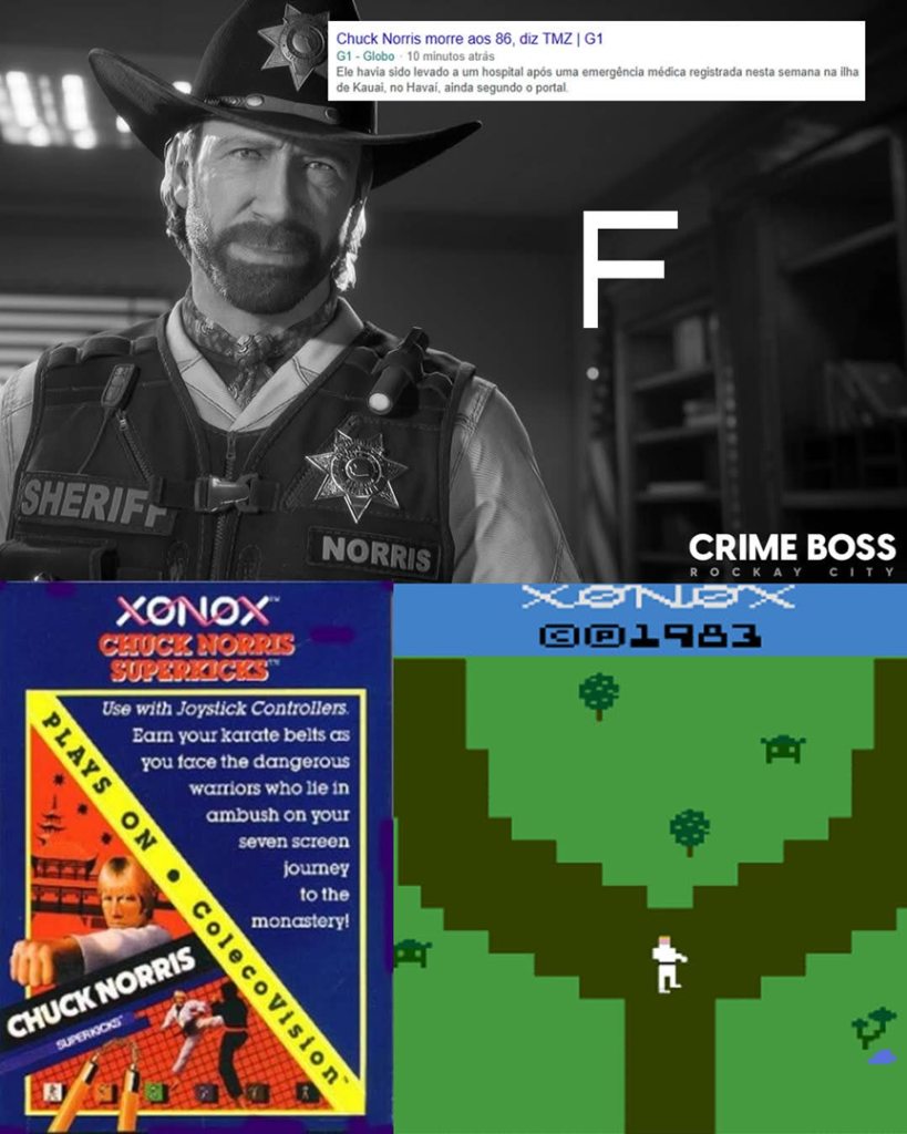 Ícone do cinema de ação e com o famoso game do Atari 2600 em seu nome, o ator Chuck Norris faleceu na manhã da última quinta (19/03/2026), aos 86 anos. A informação foi compartilhada nesta sexta (20/03/2026) no perfil do Instagram do artista. Nossos sentimentos à toda a sua família e fãs.